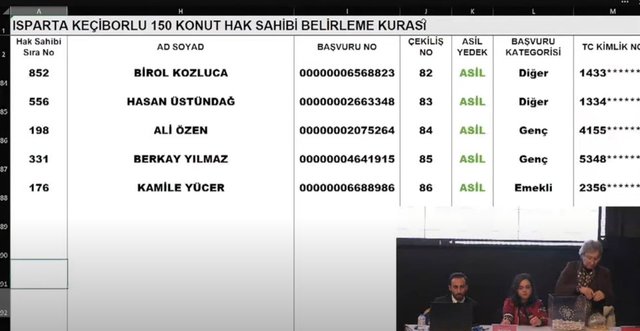 23 Ocak 2023 Isparta TOKİ kura çekimi 2+1 ve 3+1 isim listesinden bazıları...