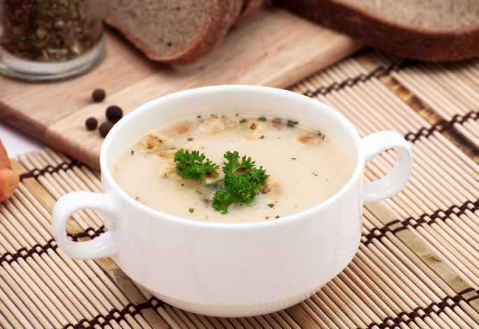 - Doğranmış bayat ekmekler et veya tavuk suyuyla kaynatılır.