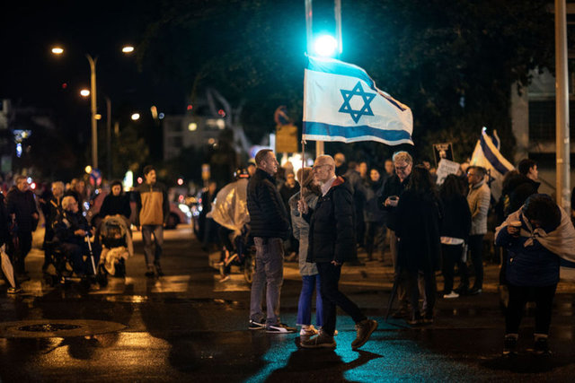 İsrail Başbakanı Binyamin Netanyahu'nun yargının yetkilerini kısıtlayan yasa teklifi ve sağ politikalarına tepki gösteren on binlerce kişi, başkent Tel Aviv ve diğer kentlerde toplandı