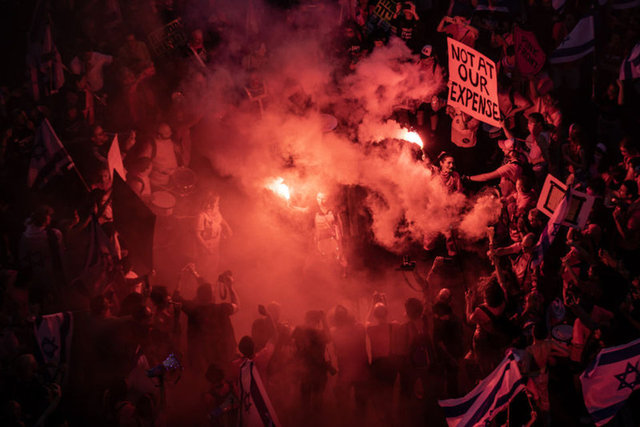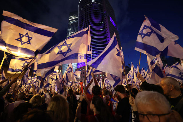 İsrailliler, Başbakan Binyamin Netanyahu öncülüğündeki koalisyon hükümetinin yargının yetkililerini sınırlayan düzenlemesi ve sağ politikalarına karşı haftalardır düzenledikleri protesto gösterilerini sürdürüyor.