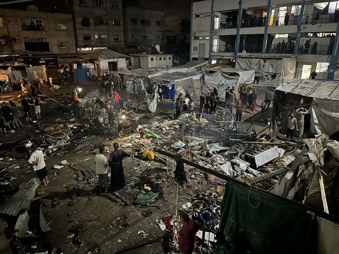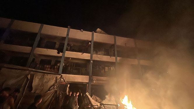 İsrail ordusunun Bureyc Mülteci Kampı'nda yerinden edilen Filistinlilerin sığındığı Ebu Halu Okulu'nu bombalaması sonucu çok sayıda kişi yaralandı.