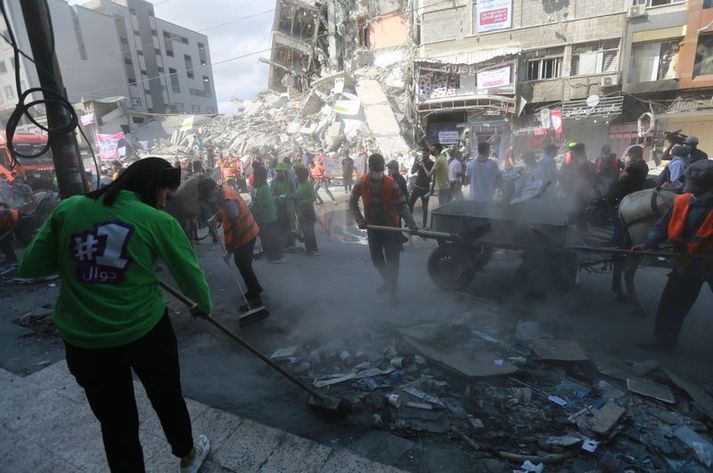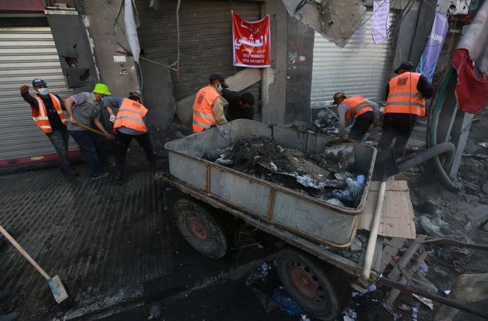 İsrail'in 11 günlük yoğun bombardımanı nedeniyle hayalet kente dönen Gazze Şeridi'nde enkaz kaldırma ve temizlik çalışması için seferberlik başlatıldı.