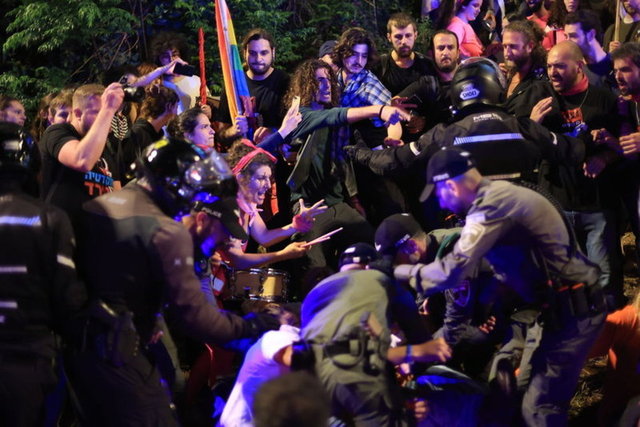 Gösterilerin yapıldığı alana, Netanyahu aleyhinde İngilizce "Suç Bakanı" (Crime Minister) yazılı pankartlar asıldı.