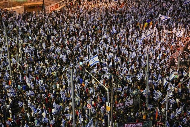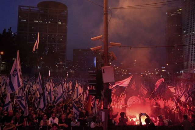 Tel Aviv'in "Kaplan" meydanında bir araya gelen göstericiler, hükümetin, yargının yetkililerini sınırlayan düzenlemesine karşı gösteri yaptı. Tel Aviv'de toplanan İsrailliler, ellerinde İsrail bayrakları taşıyarak hükümet karşıtı sloganlar attı. Gösteriye, eski İsrail Başbakanı Ehud Barak da katıldı.