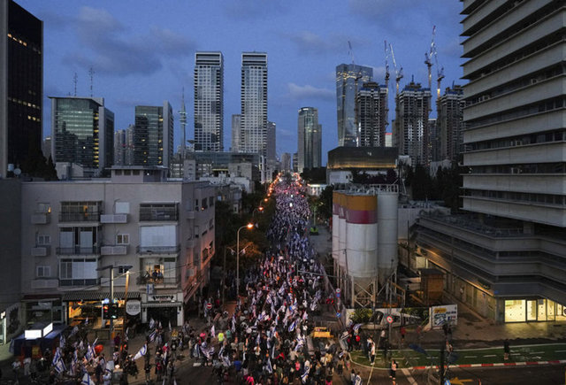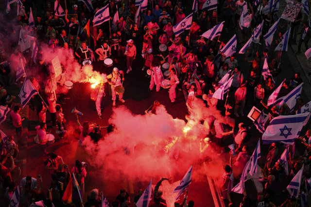İsrailliler, Başbakan Binyamin Netanyahu öncülüğündeki koalisyon hükümetinin yargının yetkililerini sınırlayan düzenlemesine yönelik protestolarına devam etti.