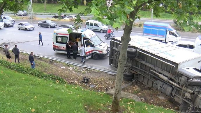 DHA'da yer alan habere göre arkasından gelen kamyonet, işçi servisine arkadan çarptı. Çarpmanın etkisiyle savrulan kamyonet bariyerleri ezdikten sonra devrildi.