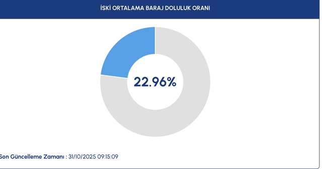 İSKİ İstanbul barajlarındaki son doluluk oranının ortalamasını açıkladı. Açıklanan son verilere göre 31 Ekim 2025 İstanbul baraj doluluk oranları yüzde 22,96 olarak paylaşıldı.