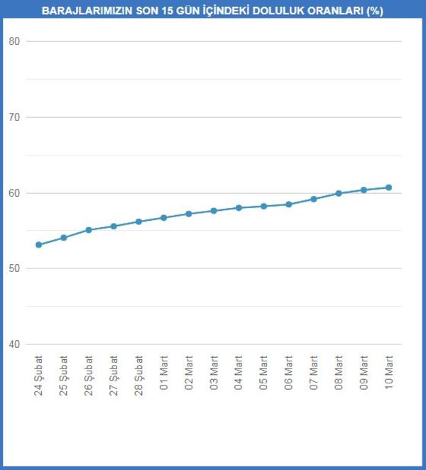 Ancak Ocak ayının son günleri ve Şubat ayı içerisindeki kar yağışlarıyla birlikte İstanbul baraj doluluk oranları başladı. Mart ayı da yağışlar konusunda yüzleri güldürdü.