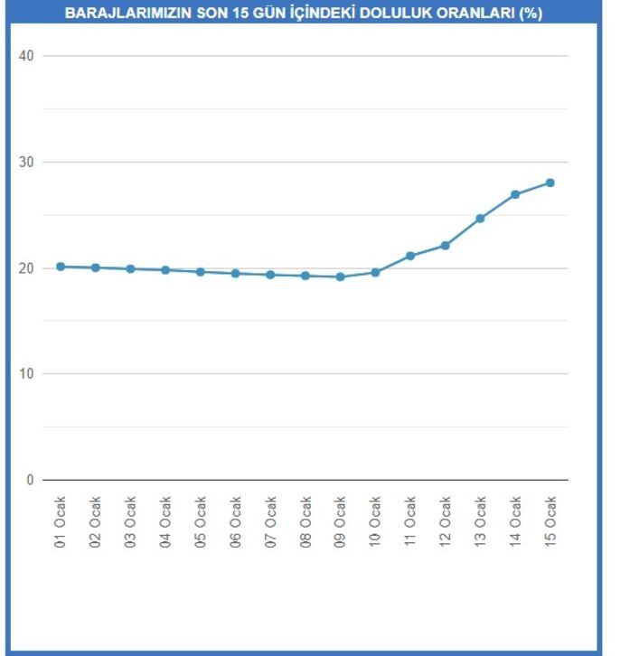 Son yılların en düşük düzeylerini gören barajlarda böylece son yağışlarla birlikte bir nebze nefes aldı. Öte yandan, bugün kent genelinde başlayan kar yağışıyla birlikte bu rakamın önümüzdeki günlerde daha da artması bekleniyor.