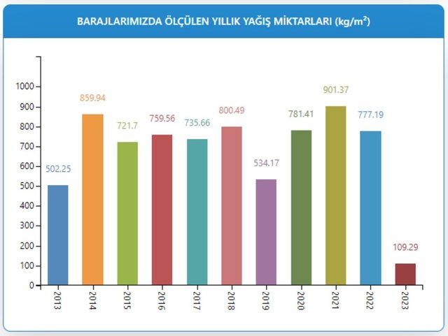 Verilere göre, bu yıl barajlara düşen yağış miktarı metrekare başına 109,29 kilogram olarak ölçüldü.