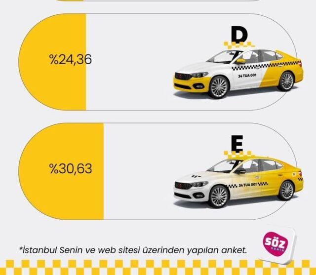 İstanbul Büyükşehir Belediyesi tarafından başlatılan uygulama tabanlı taksi anketi sonuçları açıklandı. E seçeneği yüzde 30,63 alarak birinci geldi. İşte, İBB uygulama tabanlı taksi anketi sonuçları...