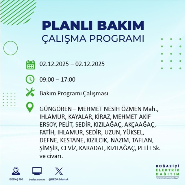 İstanbul Anadolu yakasında yaşanacak planlı elektrik kesintileri, AYEDAŞ'ın resmi internet sitesi üzerinden duyuruluyor.