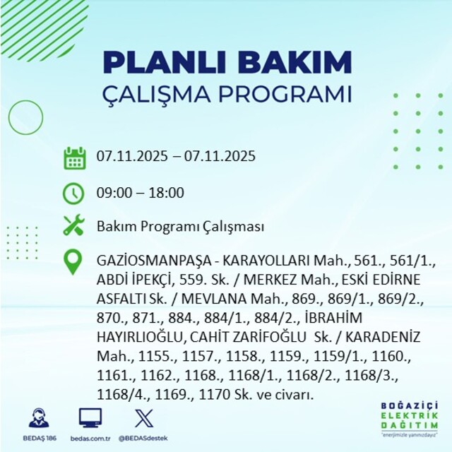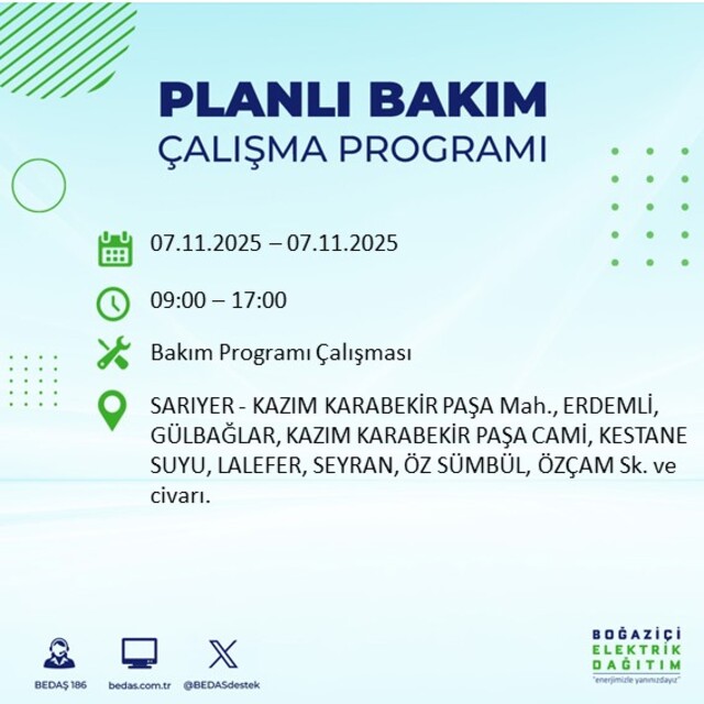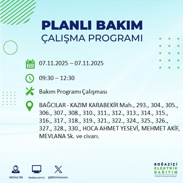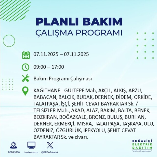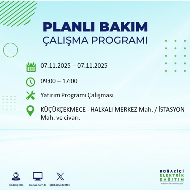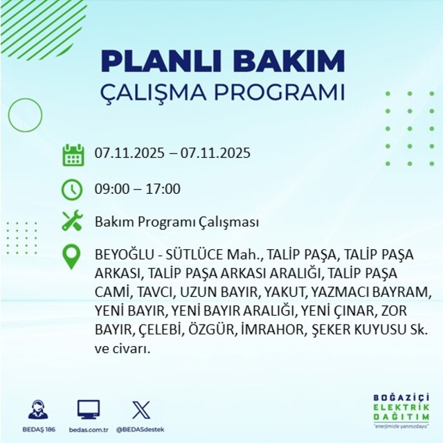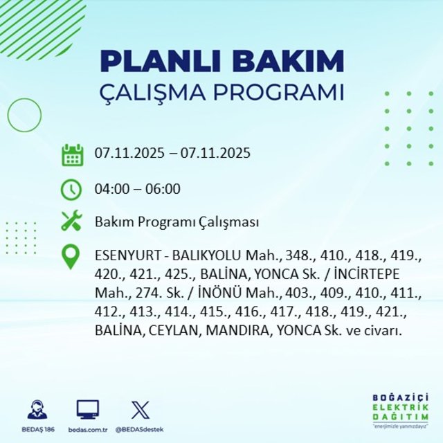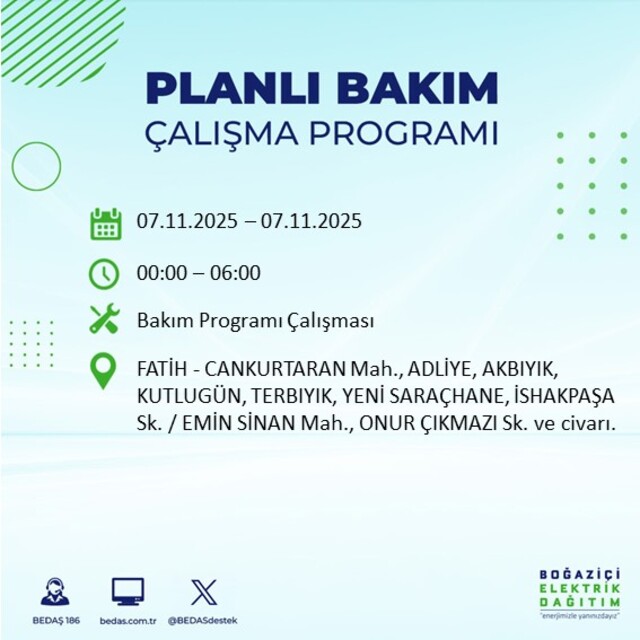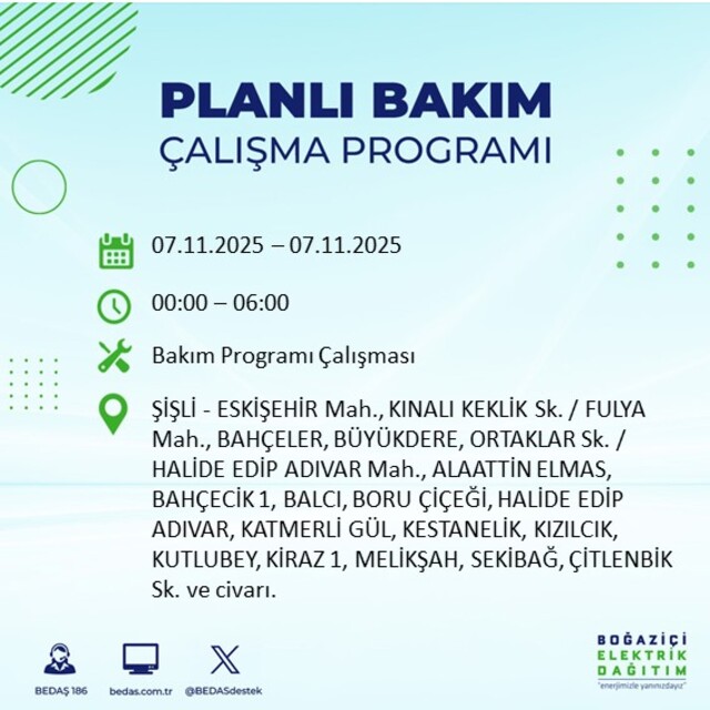 BEDAŞ duyurdu: İstanbul'da 20 ilçede elektrik kesintisi! 7 Kasım 2025 elektrikler ne zaman gelecek?