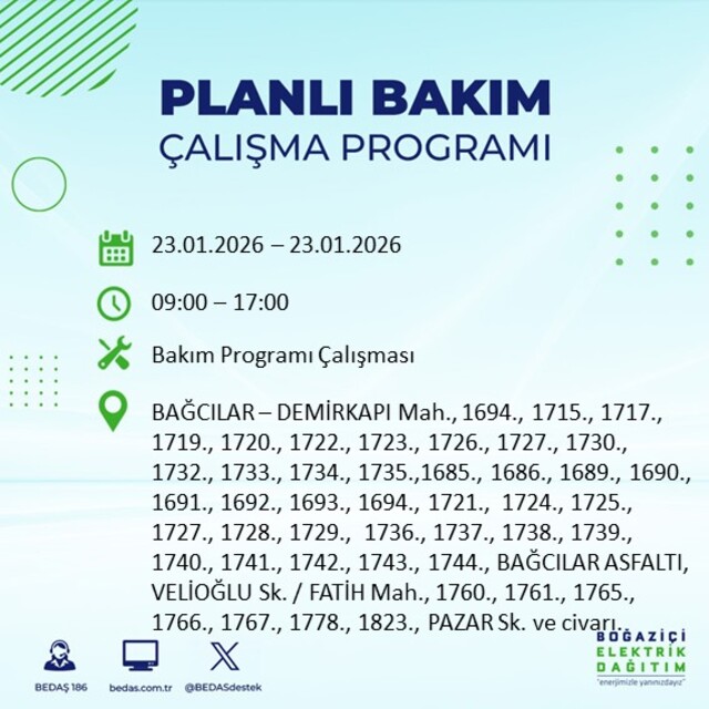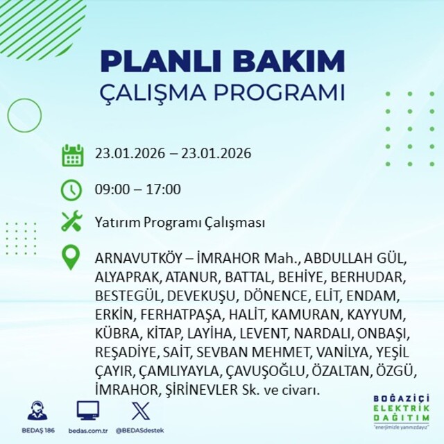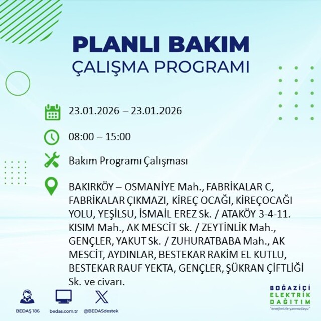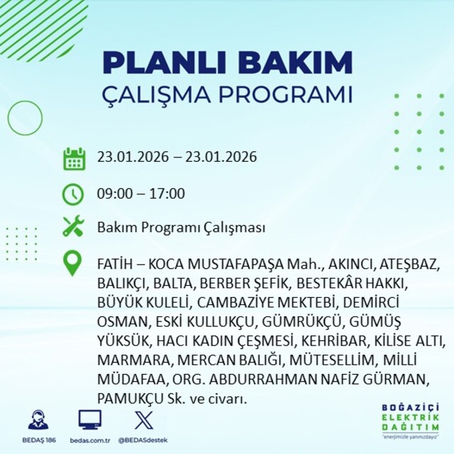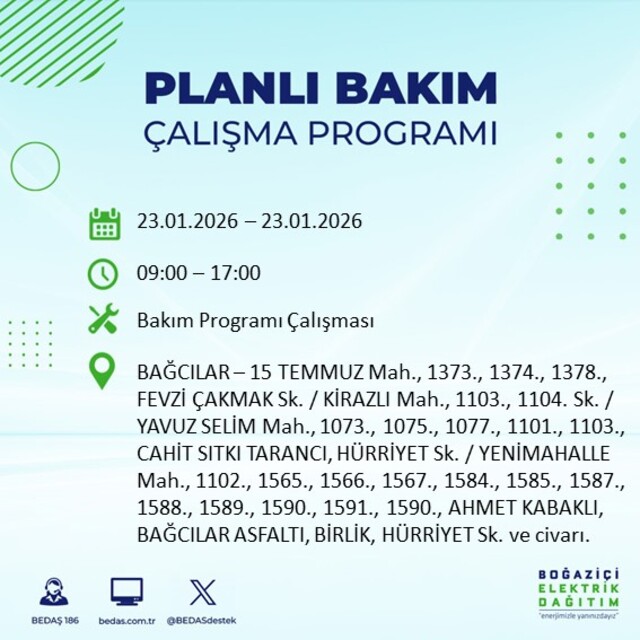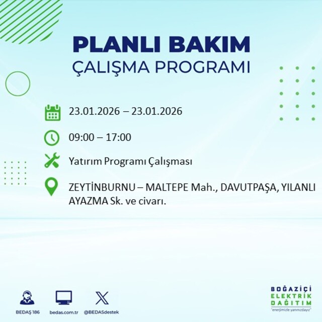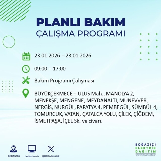 BEDAŞ duyurdu: İstanbul'da 21 ilçede elektrik kesintisi! 23 Ocak 2026 elektrikler ne zaman gelecek?