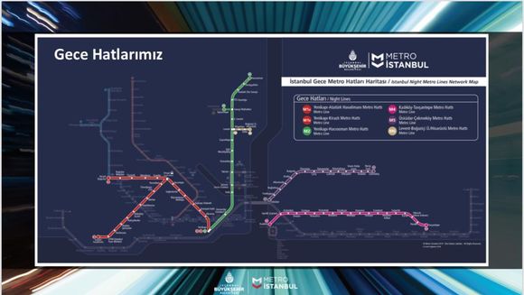 Başlatılan bu yeni uygulama çerçevesinde 20 dakikalık sefer sıklığında İstanbullulara hizmet veren gece metro hatları şunlar: