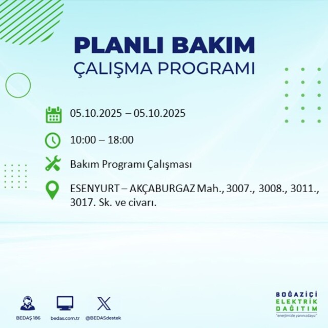 İstanbul'da 8 ilçede elektrik kesintisi! 5 Ekim 2025 İstanbul'da elektrikler ne zaman kesilecek?