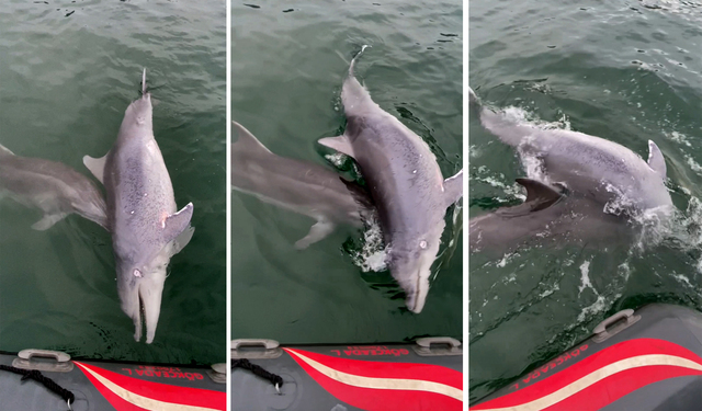 Zeytinburnu açıklarında ölen bir yunus, başka bir yunus tarafından 6 günde Yeşilköy Sahili'ne kadar getirildi.