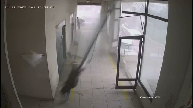 Servis çalışanı Salih Yavuzer'in savrulduğu ve cam bölmenin yerinden sökülüp duvara çarptığı anlar, iş yerinin güvenlik kameralarına saniye saniye yansıdı. Öte yandan fırtınanın ardından otomobil bakım servisinde oluşan zararı, İş yeri sahibi İsmail Kara, cep telefonu ile görüntüledi.