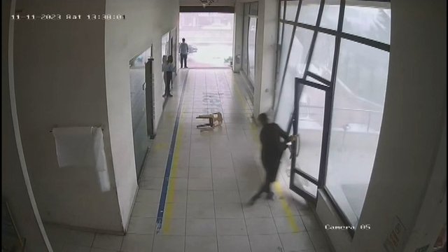 Sağanak yağmur ve rüzgarın etkili olduğu öğle saatlerinde, servis çalışanı Salih Yavuzer, açık olan iş yerinin kapısını kapatmak istedi. Bu sırada gelen şiddetli fırtına, kapının bulunduğu cam bölmeyi yerinden sökerek parçaladı.