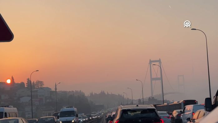 Boğaz'daki sis nedeniyle 15 Temmuz Şehitler Köprüsü'nün bazı bölümleri sis altında kaldı. Farlarını açan araçlar, köprüdeki yoğun trafikte kontrollü ilerledi.