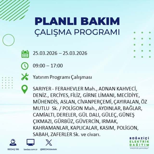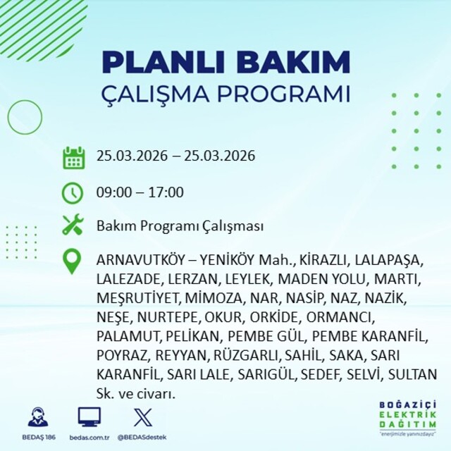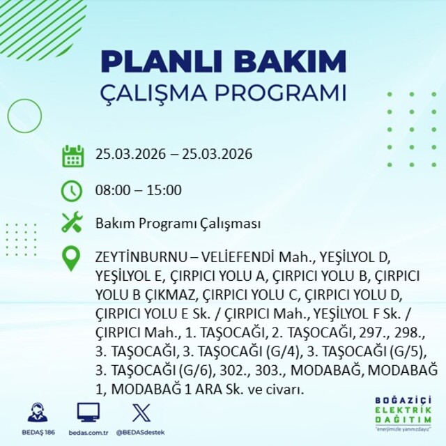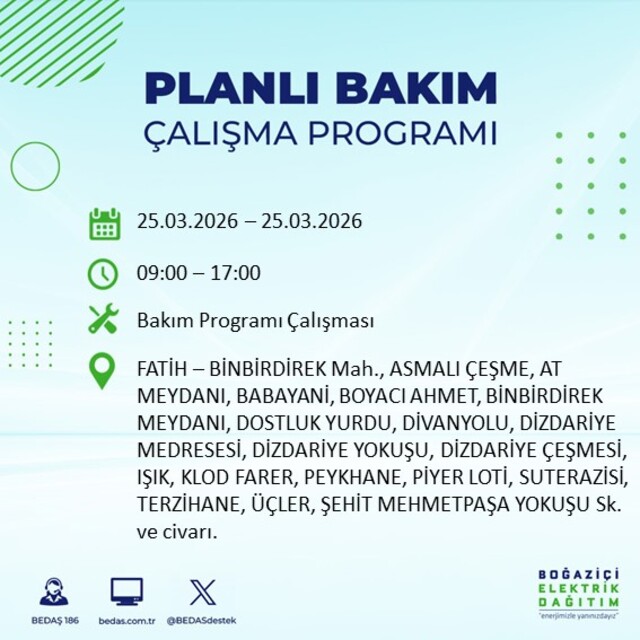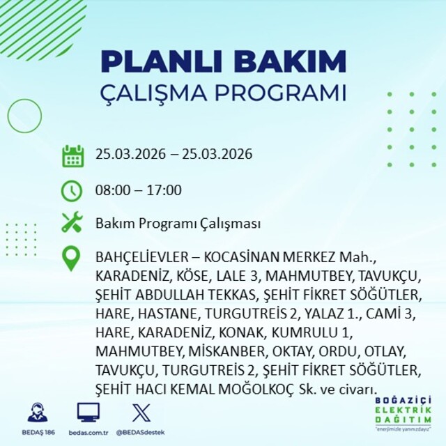 Yarın İstanbul'un 21 ilçesinde elektrik kesilecek! 25 Mart 2026 İstanbul'da hangi ilçelerde elektrik kesilecek?