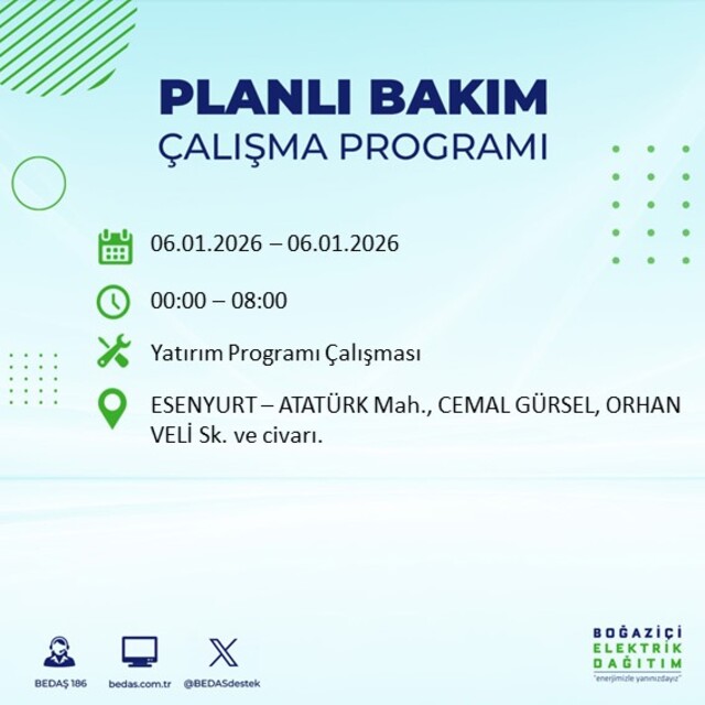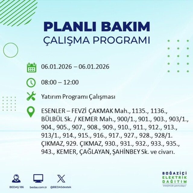 İstanbul elektrik kesintileri: 6 Ocak 2026 İstanbul'da elektrikler ne zaman gelecek?