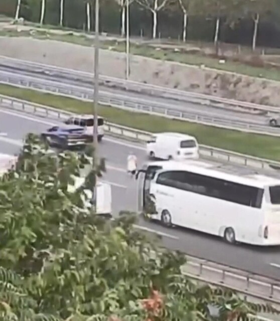 Ölüme meydan okuyan kadın, yol ayrımına kadar otoyolda yürüdü ardından da gözden kayboldu. O anlar vatandaşların cep telefonu kameralarına yansıdı.
