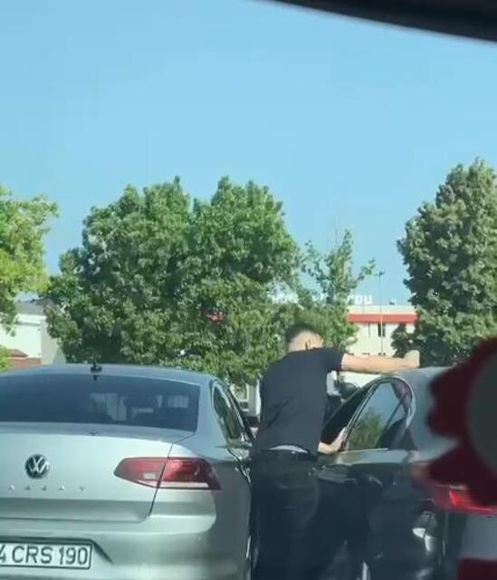 İddiaya göre, bir otomobilin sürücüsü, kendisine yol vermeyen otomobili takip ederek aracın önünü kesti.
