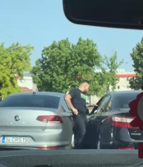 İstanbul Küçükçekmece'de bir kişi, önünü kestiği otomobilin sürücüsüne bıçakla saldırıp araca da zarar verdi. O anlar trafikteki başka bir sürücü tarafından cep telefonu kamerasıyla kaydedildi.