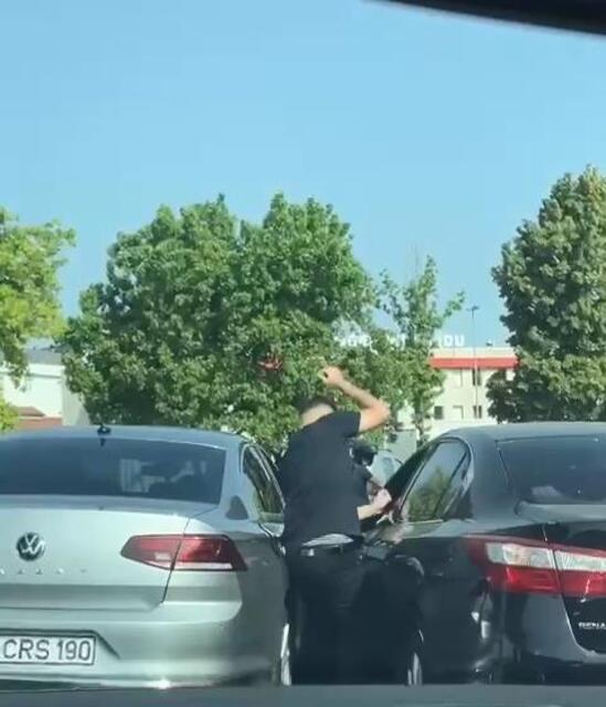 İstanbul trafiğinde dehşet anları: Önünü kestiği otomobilin sürücüsüne bıçakla saldırdı