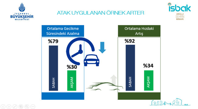 İstanbul'da hâlihazırda 80 kavşakta sistemin kurulu olduğunu belirten Tuncer, "Hedefimiz önümüzdeki günlerde bu sayıyı 200'e çıkarmak. Uzun vadede ise İstanbul'da yer alan 2 bin 250 sinyalize kavşakta bu sistemi uygulamak" diye konuştu. Tuncer, "Trafik yoğunluğundaki azalma minimum yüzde 15 seviyelerinde.