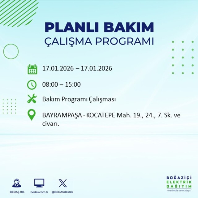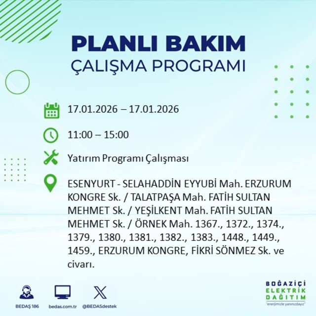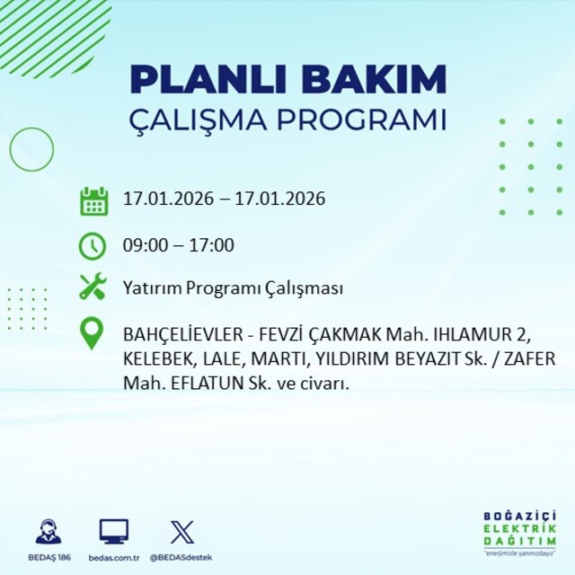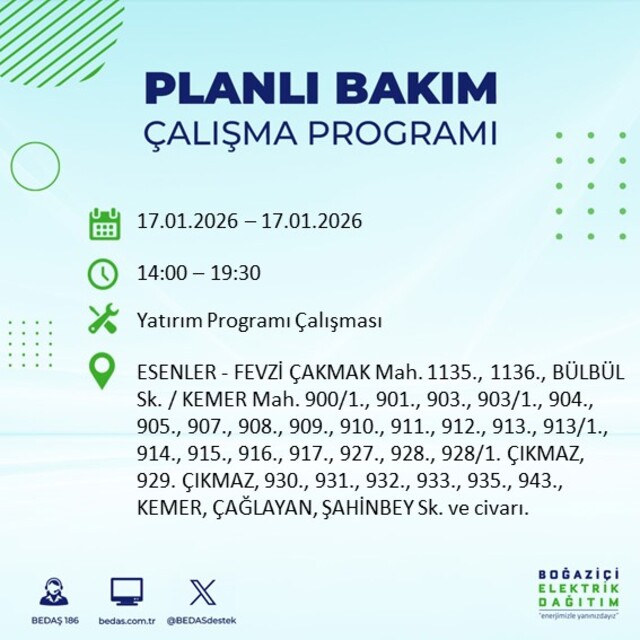 İstanbul'un 15 ilçesinde elektrik kesilecek! 17 Ocak 2026 İstanbul'da hangi ilçelerde saat kaça kadar elektrik yok?