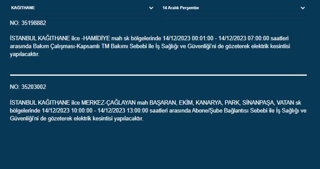 İstanbul Anadolu ve Avrupa Yakası'nda yaşanacak elektrik kesintileri AYEDAŞ ve BEDAŞ tarafından açıklanıyor. Planlı kesintiler ve çalışma yapılacak olan İstanbul'un 18 ilçesi BEDAŞ tarafından duyruuldu. İşte 14 Aralık 2023 AYEDAŞ ve BEDAŞ ile elektrik kesinti olacak ilçeler ve mahalleler...