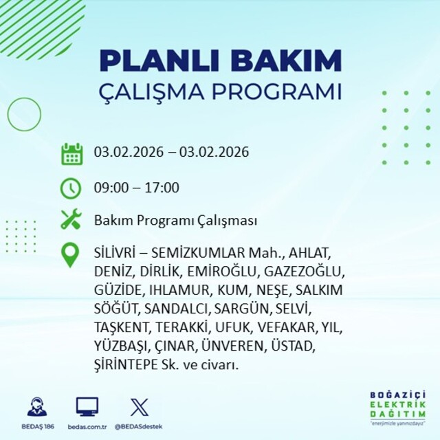 BEDAŞ tarafından yapılan açıklama kapsamında, 3 Şubat Salı günü İstanbul'da farklı ilçelerde elektrik kesintisi yaşanacak yerler ve elektriklerin geleceği saatler açıklandı. Peki, 3 Şubat Salı İstanbul'da elektrik kesintisi saat kaçta başlayacak ve elektrikler ne zaman gelecek? İşte İstanbul elektrik kesintisi duyuruları...