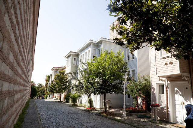 Sadece bir tarafa sıralanmış evler, yüksek saray duvarlarına sırtını dayamış ve doğrudan Ayasofya'ya bakacak şekilde inşa edilmişti.