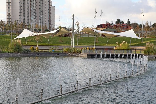Hoşdere Millet Bahçesi; Bahçeşehir Hoşdere mevkiinde yaklaşık 150 bin metrekare toplam alana inşa edilen ve ortasında 7 bin metrekarelik biyolojik gölet olan Hayatpark’a 128 tür bitki ekilirken, çeşitli türde toplam bin 600 adet ağaç dikildi. İçinde park aydınlatmasını destekleyen güneş enerji panelleri yer alıyor. Ayrıca elektrikli araçların çoğalmaya başlaması sebebiyle elektrikli şarj istasyonu kuruldu. 4 tane elektrikli araç şarj ünitesinin bulunduğu istasyon üzerindeki güneş enerji panelleri ile destekleniyor. Türkiye'de ilk defa uygulanan mimari ile inşa edilen 2 bin 500 kişilik caminin üç tarafı sularla çevrili. 7 bin metrekare büyüklüğündeki biyolojik göletten gelen suların transfer edildiği havuz Hayatpark Camii'ne ayrı bir güzellik katıyor. Yanına inşa edilen ve eski Osmanlı evlerini andıran kurs binası girişi kafeterya hizmeti verecek.