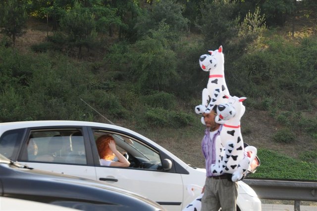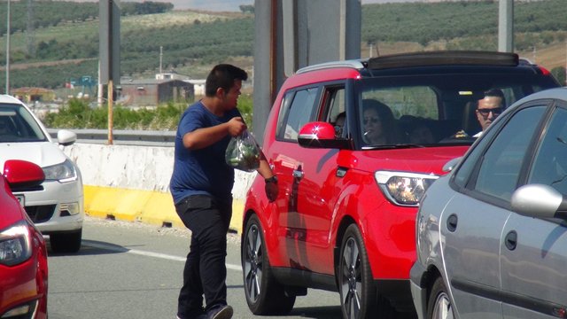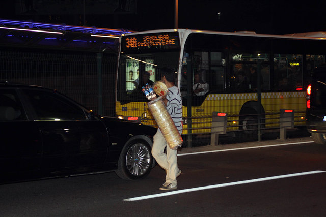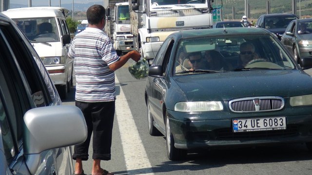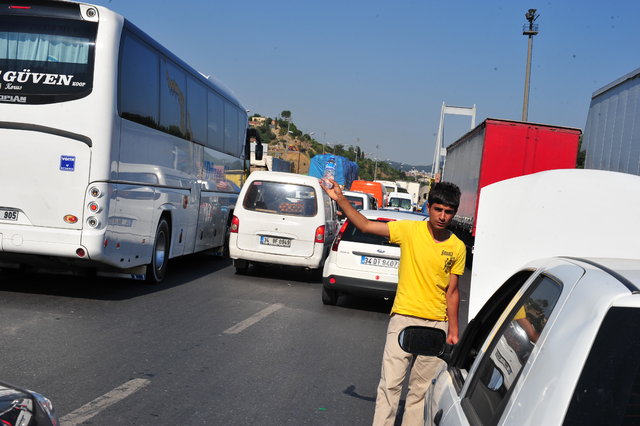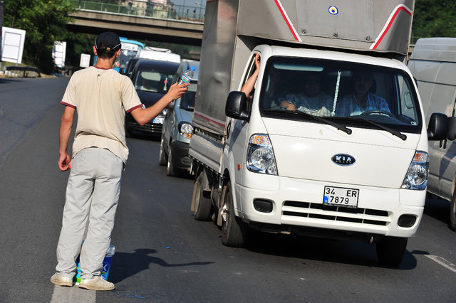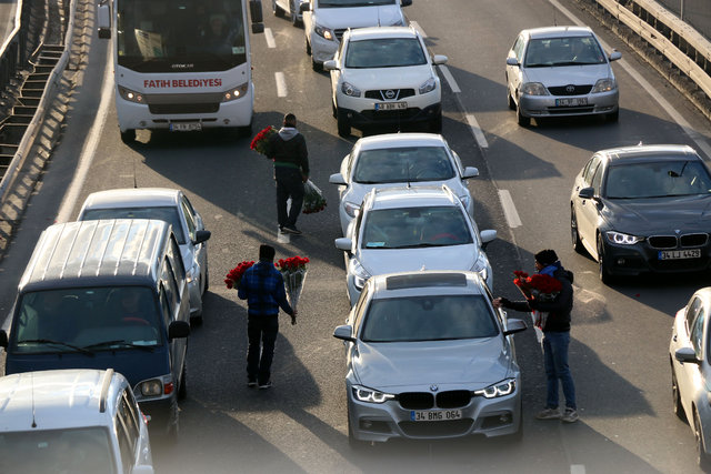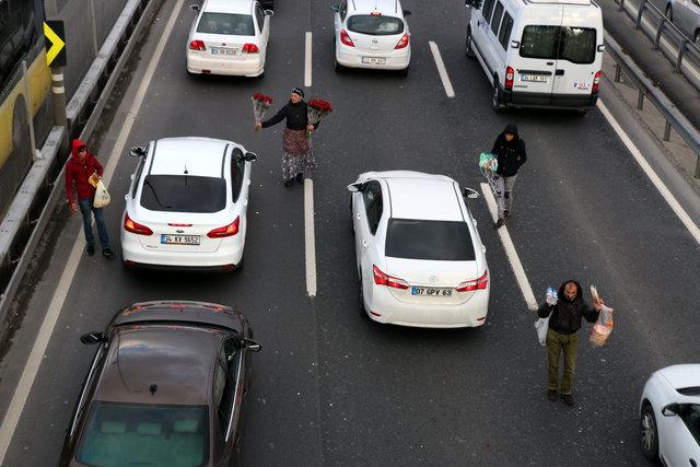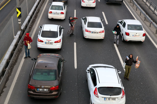 İstanbul'da trafiğin yoğun olduğu saatlerde su, simit, kağıt helva hatta şarj kablosu satan seyyar satıcılar günlük 100-150 lira kazanıyor. Özellikle mesai çıkışlarında satış yapan seyyar satıcılar hem trafiği hem de kendi canlarını tehlikeye atıyor. Kabahatler kanununa göre kendilerine 154 lira ceza kesilse de otoyollarda satışlara devam ediyorlar.