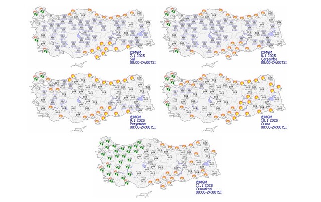 Meteoroloji Genel Müdürlüğü tarafından yapılan son tahminlere göre; Doğu kesimler çok bulutlu, sabah ilk saatlerde Rize yağmurlu, Artvin ve Van karla karışık yağmur ve kar yağışlı, iç ve batı bölgelerin parçalı ve az bulutlu geçeceği tahmin ediliyor. Sabah ve gece saatlerinde iç ve doğu kesimlerde buzlanma ve don olayı ile birlikte pus ve yer yer sis bekleniyor. Doğu Karadeniz’in iç kesimlerinin yüksekleri ile Doğu Anadolu’nun yüksek ve dik yamaçlarında çığ tehlikesi bulunmaktadır.