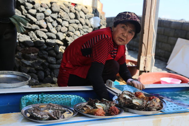 UNESCO Dünya Mirası Listesi'nde de yer alan haenyeolar, deniz altından topladıkları kabuklu canlıları karada turistlere satarak geçimlerini sağlıyor.