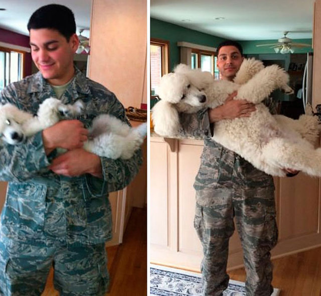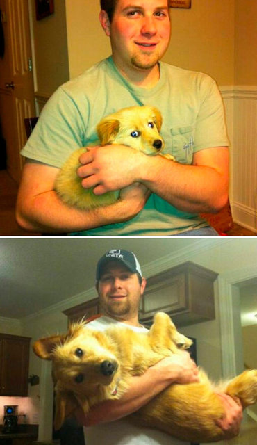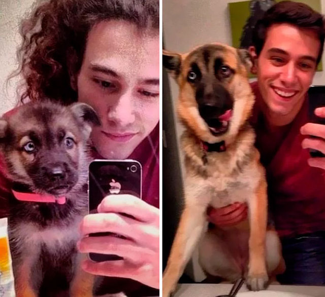 Yavru köpekler göz açıp kapayıncaya kadar büyüyor. Köpekleriyle birlikte fotoğraf çekilen sosyal medya kullanıcıları da dediğimizi kanıtlıyor. O zaman gelin sahipleriyle birlikte büyüyen köpeklerin öncesi ve sonrası fotoğraflarına göz atalım...