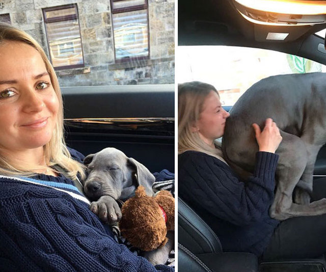 8 haftalıktan 5 aylığa. Aynı anne, aynı koltuk, sadece daha büyük bir köpek!