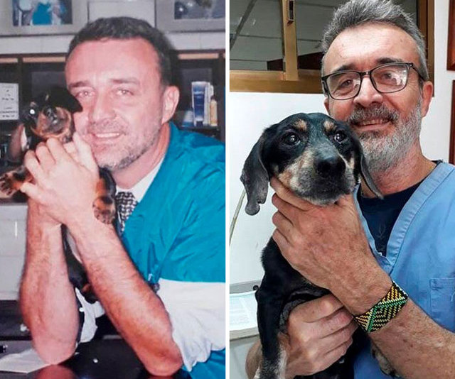 Aynı veteriner, aynı köpeği, 15 yıl sonra yeniden tedavi ediyor.