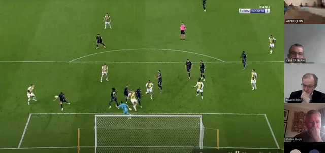 Özgür Yankaya: Yanlış anlaşılmasın, sadece beklentiye göre yaptığımı söylemiyorum. O andaki ruh halimi hatırlamaya çalışıyorum. Neden yaptığımı sorguluyorum, hala da devam ediyor. Neden yaptığımı sorguluyorum. Hatırladıklarımdan bahsetmeye çalışıyorum. Mesela aklımda kalan bir şey daha var, yeni aklıma geldi, mesela bir şey vardı. Şimdi Hugh kızabilir ama. Her pozisyon özelinde ayrıdır, UEFA kliplerindeki örneklerle bağdaştırarak bazen hata yapabiliyoruz.