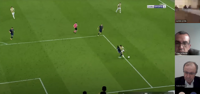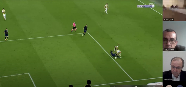 Abdülkadir Bitigen: Burada yerim çok iyiydi. Top bir anda defanstan önünce ikili mücadele meydana geldi, 11 numaralı oyuncu önümü kapattı, kontak noktasını göremedim. Akabinde göremediğimi VAR hakemine söyledim. Kendisi de pozisyonu incelemeye başladı. Ardından temas gördüğünü, ATP'ye baktıktan sonra ekrana davet edeceğini söyledi.