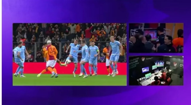 Pawel Gil: Hakem direkt serbest vuruş veriyor. En iyi açılardan bakıyoruz. Tüm kameralardan izleyelim. VAR kararı değiştirmedi. Sol ayağa yapılan temas ve sol ayak altına yapılan teması bu kameradan değerlendirildi.
