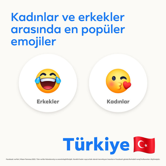 Dünya genelinde son üç ayda oluşturulan gönderilere bakıldığında kadınların erkeklerden daha fazla emojili gönderi paylaştığı gözlenirken, Türkiye genelinde en çok kullanılan emojiler mutluluk gözyaşı, kırmızı kalp, katlanmış eller ve ukala kendini beğenmiş emoji oldu.