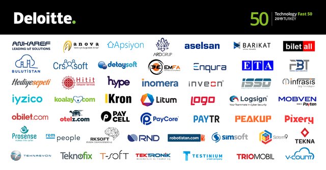 Deloitte Technology Fast Türkiye listesine giren 50 şirket.