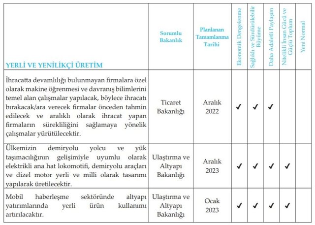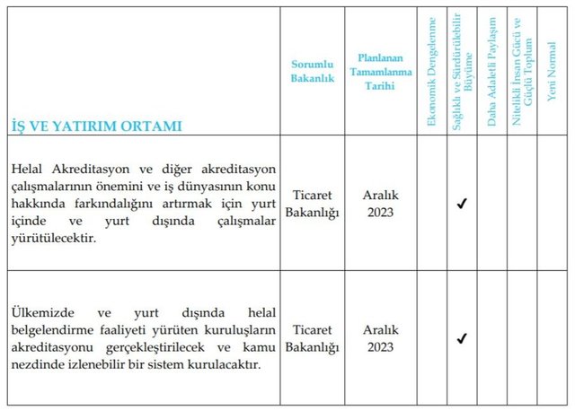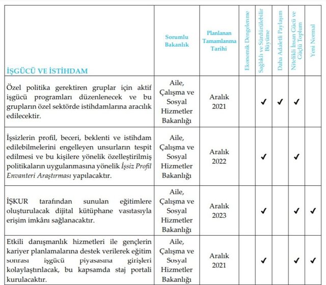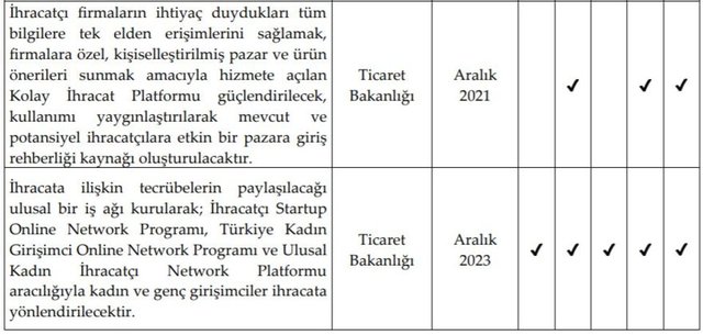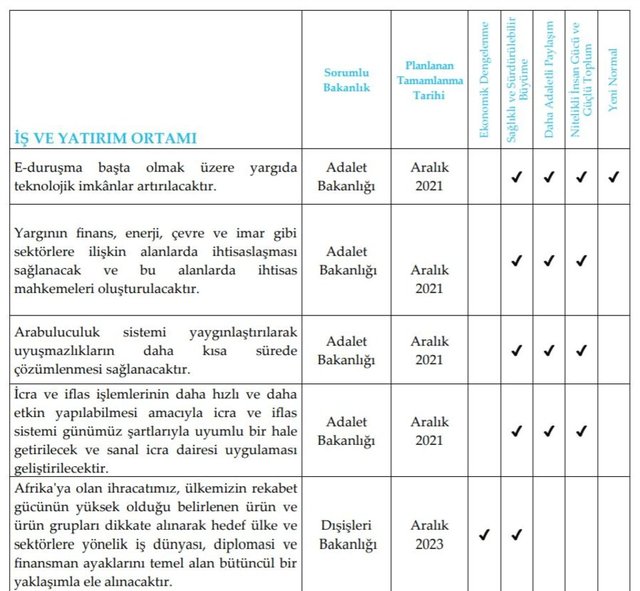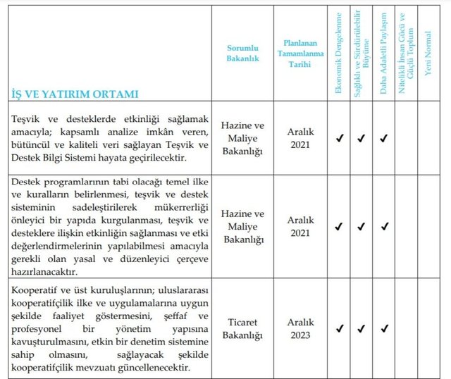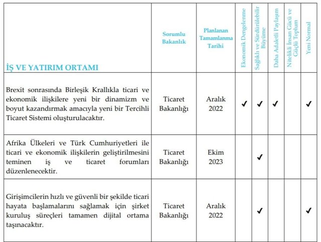 YEP'te iş ve yatırım ortamına yönelik de hedefler yer alıyor.