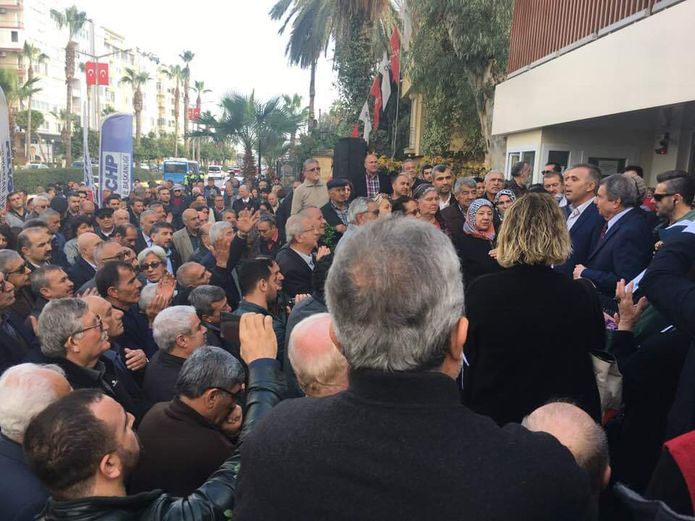 Ankete tepki için Ankara’ya otobüslerle gitme kararı alınan Mersinli CHP’lilere İstemihan Talay engel olurken, CHP Mersin İl Başkanlığı önündeki topluluğa bir konuşma yaptı. Talay konuşmasında şu ifadelere yer verdi: