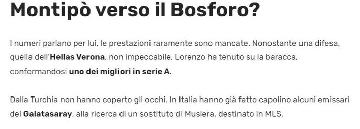 Sarı-kırmızılıların ocak ayı transfer döneminde Verona'nın kapısını çalabileceği ifade edilirken, Montipo'ya ayrıca ABD Ligi MLS'ten de talipler olduğu belirtildi.